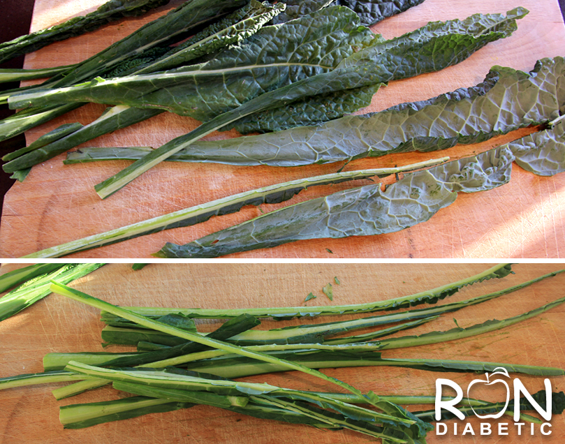 Обычно мы удаляем стебли тосканской капусты кале, т.к. они дают горечь. Да и не у многих есть мощные блендеры, чтобы разрубить такие твердые стебли.