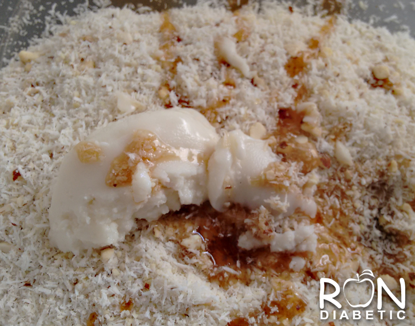 Растопить на водяной бане пасту мякоти кокоса (coconut butter) до размягчения.