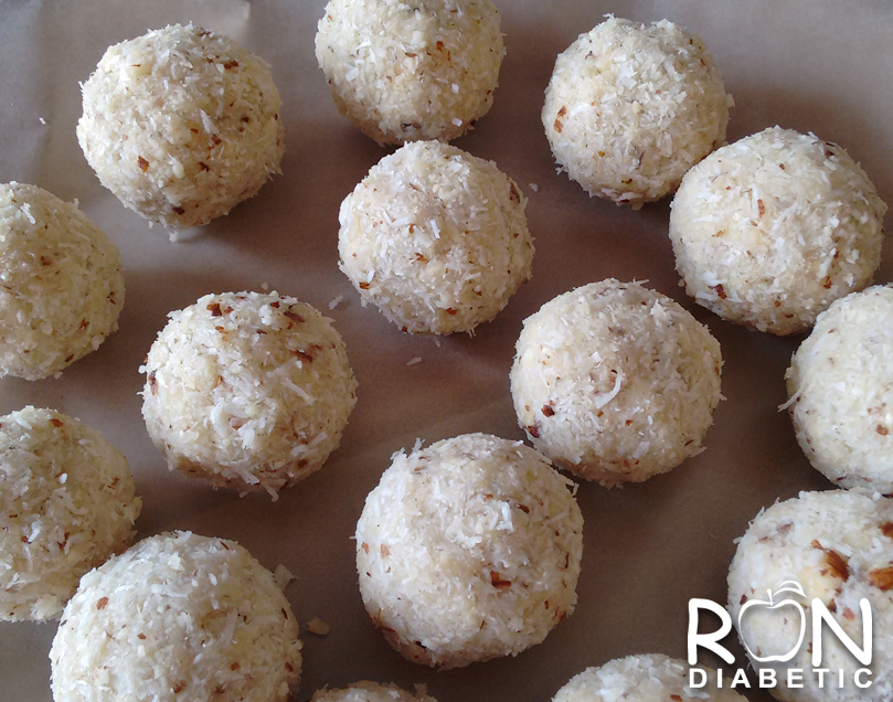 Теперь можно лепить. Уверена, многие из вас в детстве лепили шарики из пластилина. Так вот делать эти кокосово-миндальные печенья — тоже самое.